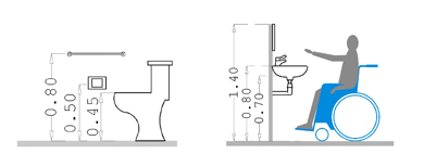 - Lavamanos profundidad 0.70 mt para que entren las rodillas y se puedan acercar al lavamanos.
